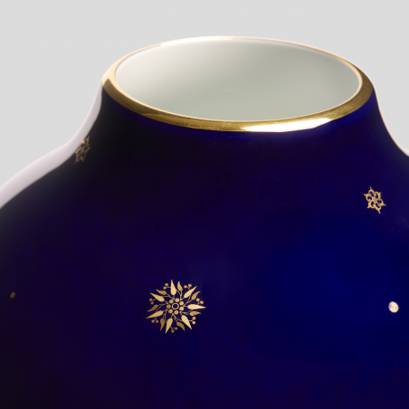 Vase SR22 "réduit" à décor de bleu de Sèvres, jeux de fond et filets d'or 24 carats. Marques de Sèvres sous le pied.