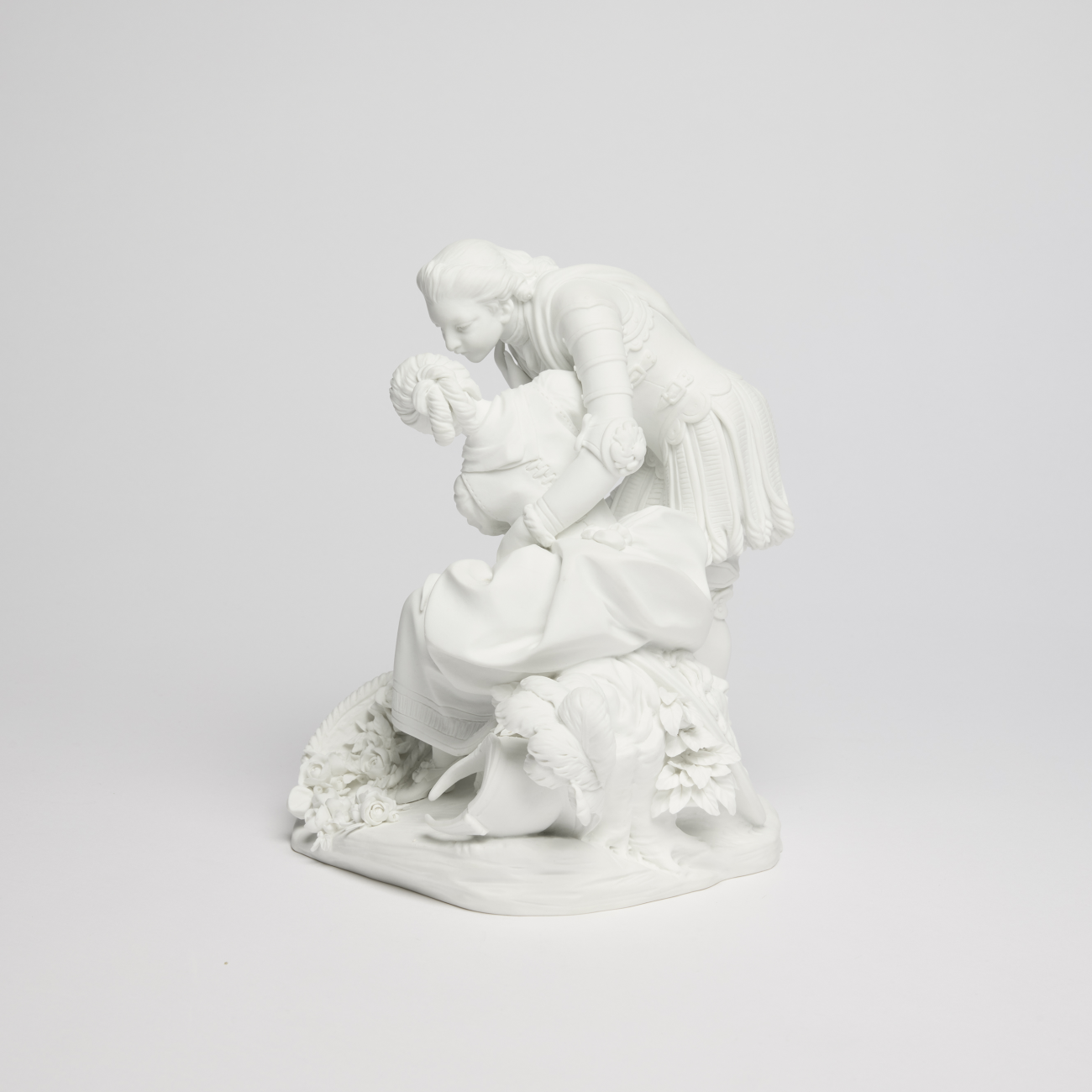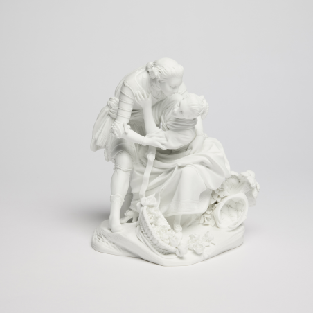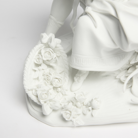 Sculpture créée vers 1770 pour Sèvres par Étienne-Maurice Falconet. Biscuit de porcelaine estampée et pastillée. Parure et pastillage réalisés à la main, rendant uniques les détails de chaque exemplaire. Marques de Sèvres en creux sur la terrasse.