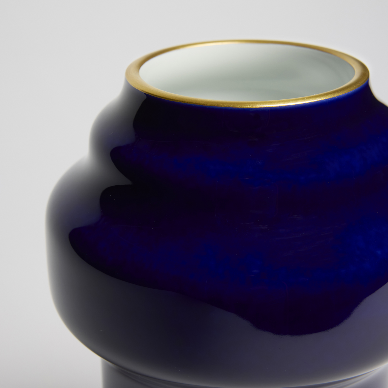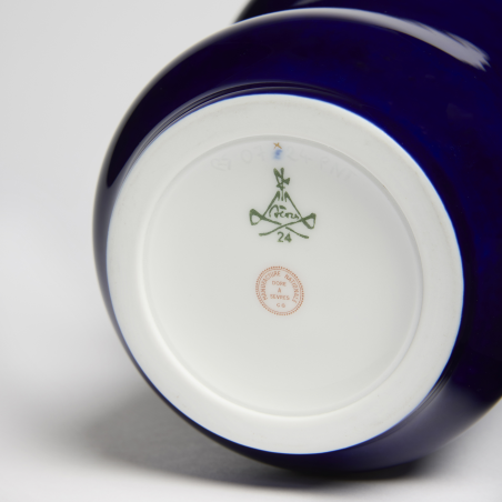 Vase en porcelaine à décor de bleu de Sèvres et filets d'or 24 carats. Marques de Sèvres sous le pied.