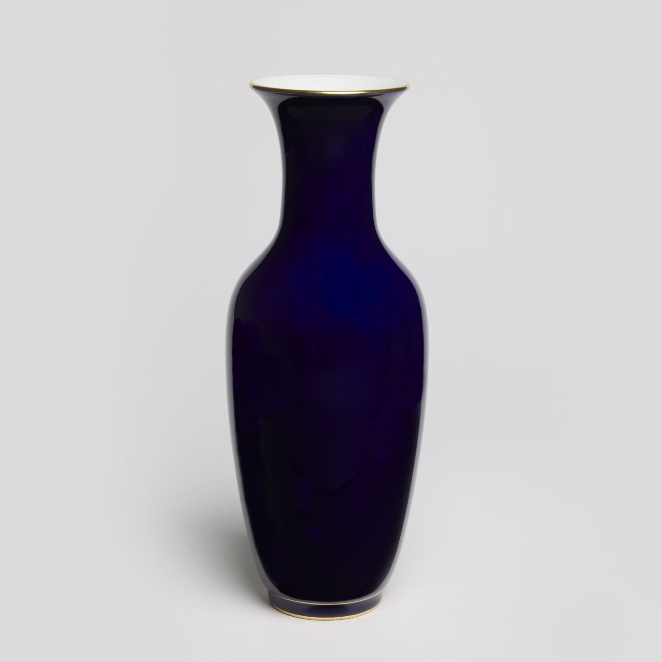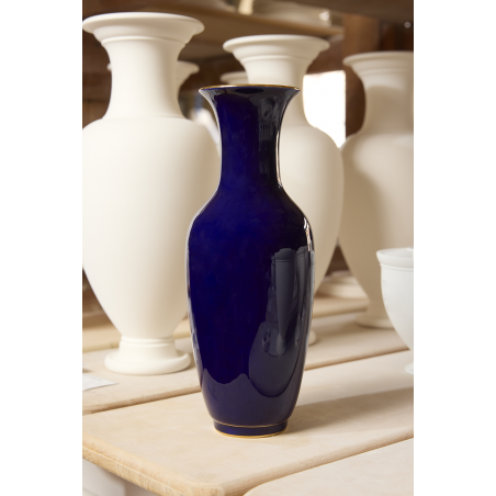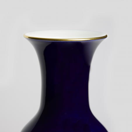 Ovoid "Potiche" Vase in porcelain decorated with Sèvres blue and 24-carats gold thread.
